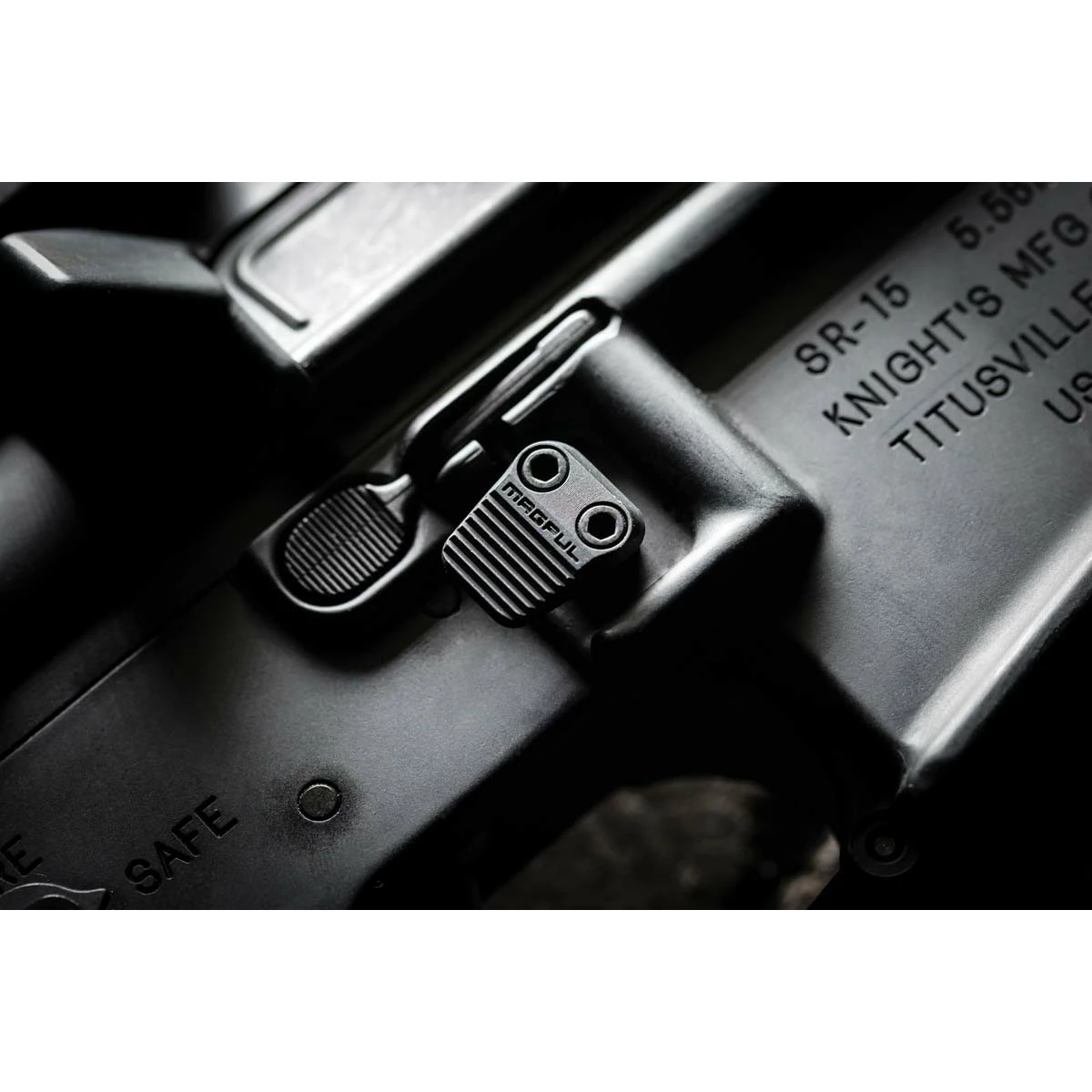 The Magpul AR Enhanced Magazine Release provides an enlarged contact surface for quick and fumble free magazine changes.