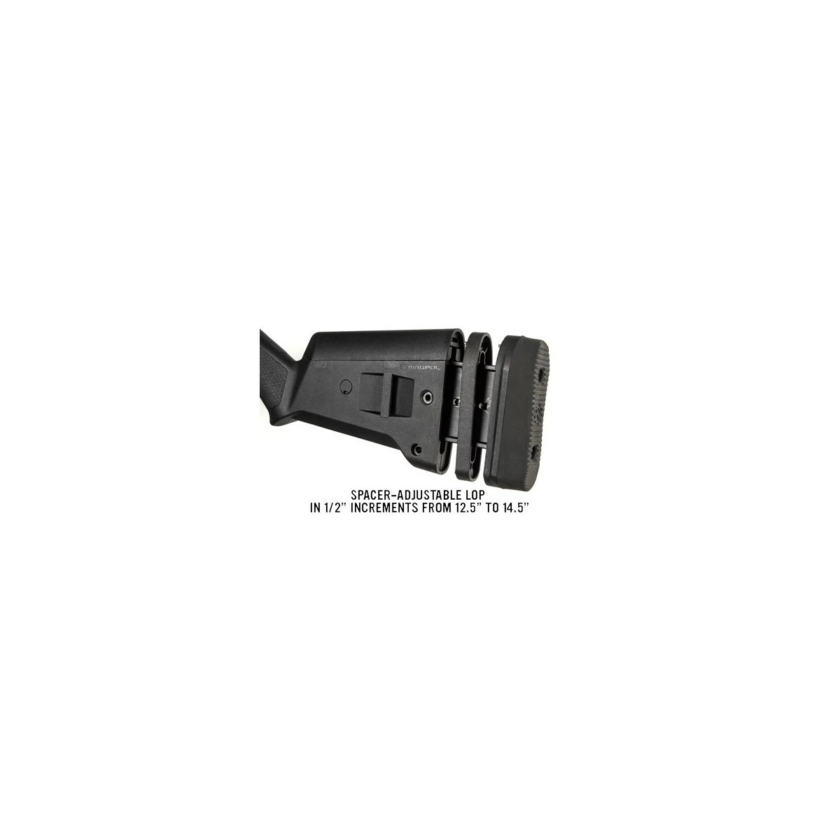 The SGA Stock is an ambidextrous, user-configurable buttstock designed to add much-needed adjustability to the tried and true Remington 870 12ga shotgun. Featuring a spacer system for length of pull adjustment, improved grip ergonomics, recoil-reducing butt-pad, optional cheek risers for use with optics/raised sights, and other accessories,